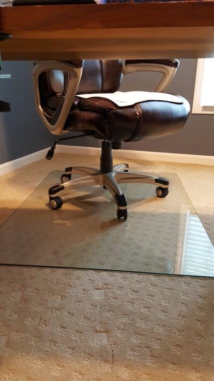 Tempered glass is scratch resistant and supports up to 1,000 lb. Chairmat comes with a rubber adhesive pad to prevent slipping. Glass chairmat with a lip offers a durable surface to protect your hardwood floors and carpets. Enjoy free shipping on most stuff, even big stuff. Floortex's glaciermat's are a premium glass chair mat perfect alongside big and tall and executive office chairs.