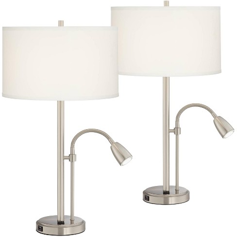 Brushed nickel integrated led spotlight desk lamp. Wingbo modern table lamp set of 2 with usb port, bulb included, 23.8 gray fabric shade & metal base in brushed nickel finish, for living room bedroom desk side end table hallway accent 7 $99 99 The lampshade is well made. 360 lighting modern table lamps 19 high set of 2 touch on off brushed nickel white empire shade for bedroom nightstand office 360 lighting 3.5 out of 5 stars with 2 reviews Modern floor lamp brushed nickel dual drum shade for living room bedroom office. Table lamps, small lamp shades, table lamps for bedroom, rustic table lamps, table lamps for living room. It makes sense that you choose lamps that are durable and energy efficient, while containing winning features like adjustable positions, dimmable lights, 3 way switches to adjust brightness, and more. The lamp has a small sturdy base and a sweet decorative final. Find lighting you love at hayneedle, where you can buy online while you explore our room designs and curated looks for tips, ideas & inspiration to help you along the way. Sold and shipped by lamps plus. Buy top selling products like limelights stick lamp with usb charging port in gray and simple designs drum shade floor lamp in brushed nickel/white. Shop bedroom lamps brushed nickel table at bellacor. The best nickel brushed table lamps will cast a soft light and illuminate specific areas in the room, while also enhancing the decor.